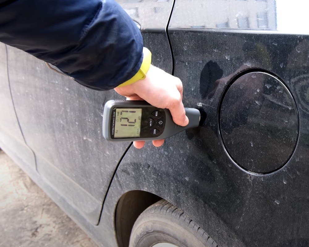Проводим профессиональную проверку толщиномером, на предмет покраски всех частей кузова. В некоторых случаях на глаз практически невозможно определить, крашен авто или нет, в таких случаях на помощь приходит специализированное устройство - толщиномер.